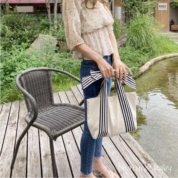 コンビニへの買い物や、ちょっとしたお出かけに最適です。汚れても洗えるのでバッグを清潔に保てます。内ポケット付き、マグネット付き※リボンは取り外しできません。