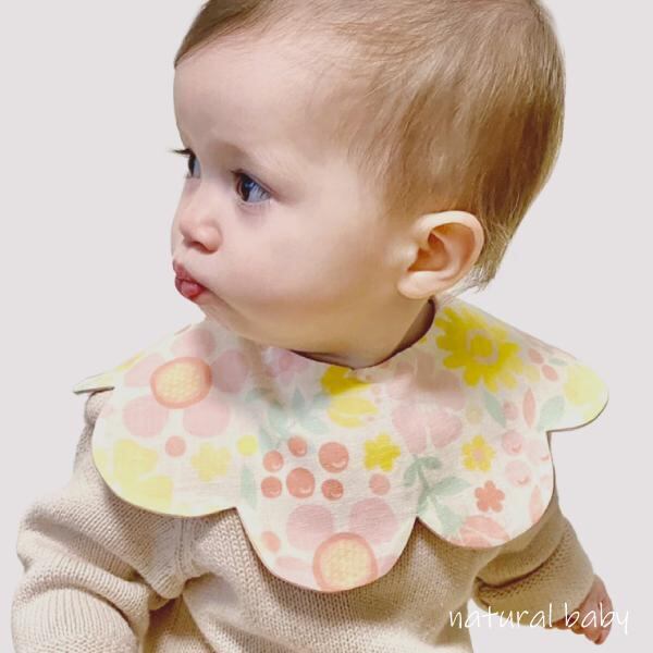 出産祝いなどの贈り物にぴったり!360度ラウンドタイプのベビー用スタイです。2段階サイズ調節のスナップボタン付き。リバーシブルでお使いいただけます。長時間、数回に渡り揉み練り、芯からほぐれたナチュラルな表情とソフトでふんわりとした優しい肌触りをお楽しみいただける生地です。