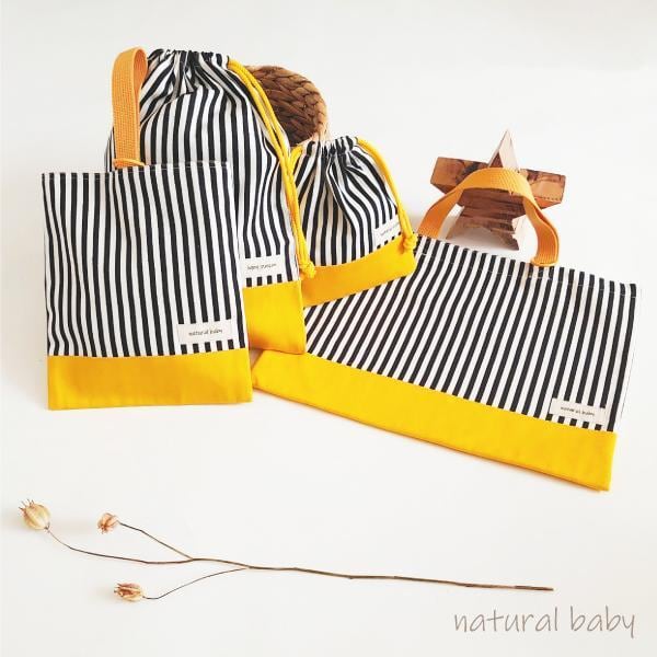 入園入学祝い4点セット レッスンバッグ シューズバッグ お着替え袋 コップ袋 ピンク×ボールドストライプ
